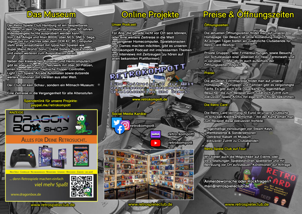 Im Retro Spiele Club Hamburg erleben Besucherinnen und Besucher eine vollständig spielbare Zeitreise durch die Geschichte der Heimcomputer und Videospiele. Alle Geräte stehen bereit, können direkt ausprobiert werden und vermitteln das authentische Gefühl ihrer jeweiligen Epoche – von den ersten Pixeln der späten 70er bis zu den technisch ausgereiften Systemen der 90er-Jahre. Das Besondere: Hier ist wirklich alles original Hardware, liebevoll gepflegt, restauriert und mit typischen Spielen ausgestattet, die den Charakter ihrer Zeit perfekt einfangen. Gleichzeitig ist der Club kein „Bitte-nur-anschauen-Museum“, sondern ein Ort, an dem man Technikgeschichte im besten Sinne selbst erlebt – durch Spielen, Ausprobieren, Staunen und Vergleichen.